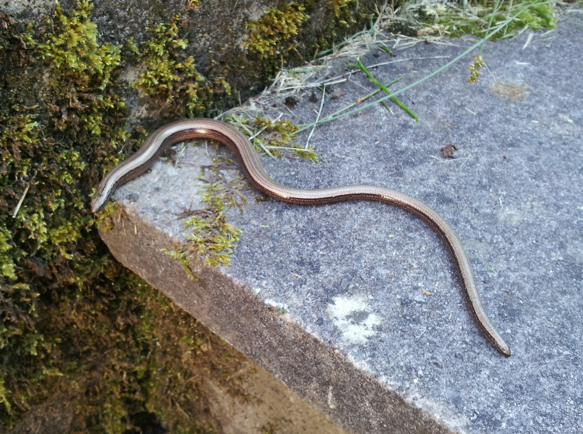 Slow worms are simply fantastic creatures. A shimmering slither of coppery irridescence, this gorgeous lizard was uncharacteristically out in the open basking on a step. Slow worms don't just look great, they are also fascinating to boot. Being a legless lizard is interesting enough, with an ability to automotize (drop their tail to you and me) when challenged by predators is another incredible adaptation. They are also a gardeners friend for their preference for munching on slugs, which seemed to be out in abundance yesterday evening.